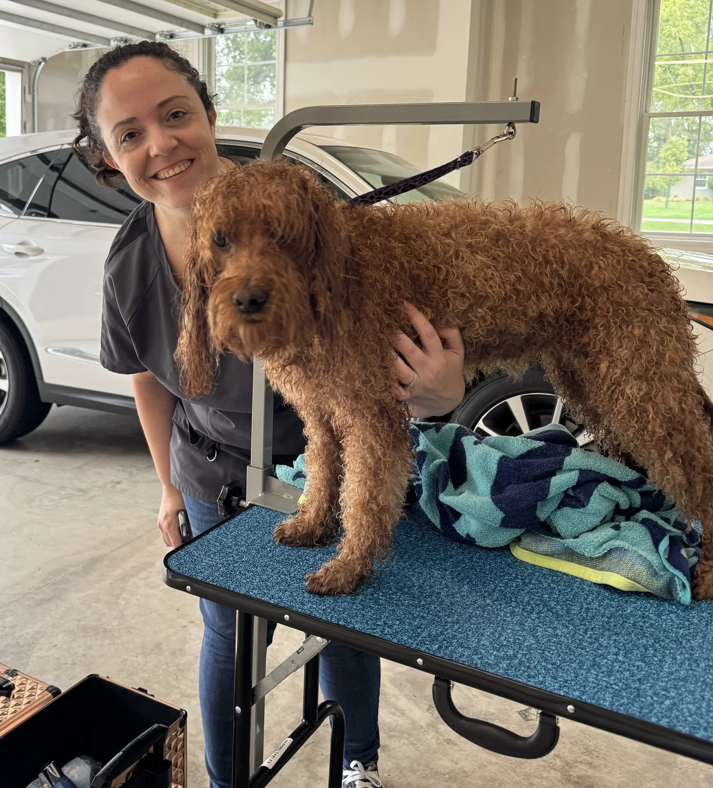 The Grooming Girl is owned and operated by Jill Meyer, a certified Pet Stylist with over 15 years of experience. After seeing how stressful salons and mobile units can be, Jill created an in-home service that keeps pets calm and close to family. Jill brings all the supplies, provides specialty care, and leaves every space spotless — helping dogs feel comfortable and cared for throughout the St. Louis community.